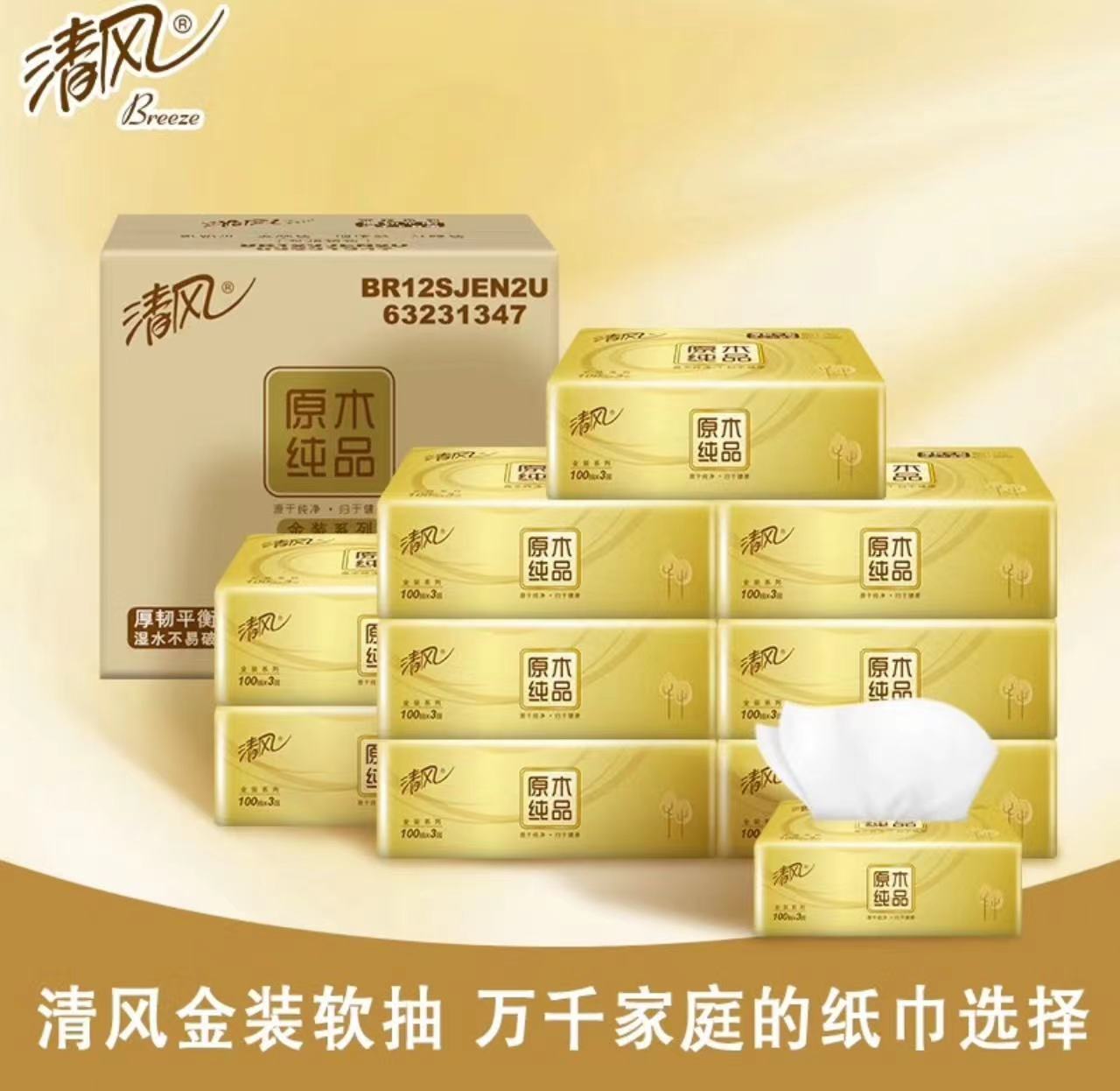 • 清風 J48E 軟包抽取式面紙 100抽 3層 190*132mm